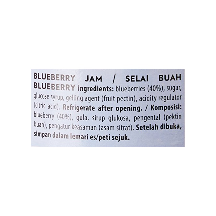 원재료:블루베리,당류(설탕,포도당액당:밀 유래)고, 겔화 제(백 친:사과 유래)고, 신맛료