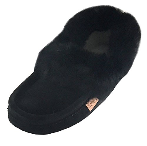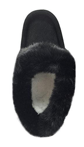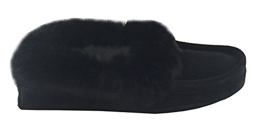 -. Binding : Apparel -. Brand : Laurentian Chief -. Color : Black -. Department : mens -. Feature : Canadian Handmade / Thick Fleece Lining / Real Rabbit Fur Collar / Black Color / Fit True to Size - For Half Sizes Go Down (10½ order size 10) -. ProductGroup : Shoes -. ProductTypeName : SHOES -. Title : Laurentian Chief Men's Suede with Rabbit Fur Collar Soft Sole Moccasin Slippers Black