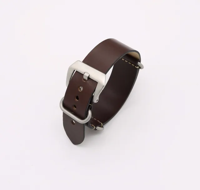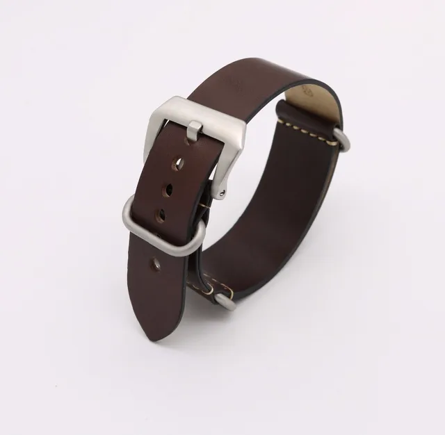 | [해외]24 미리메터 새로운 남자 레이디 다크 브라운 빈티지 시계 밴드 스트랩 벨트 진짜 가죽 실버 블랙 기모 나사 버클 고급 나토 Zulu 링 |