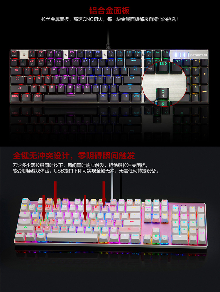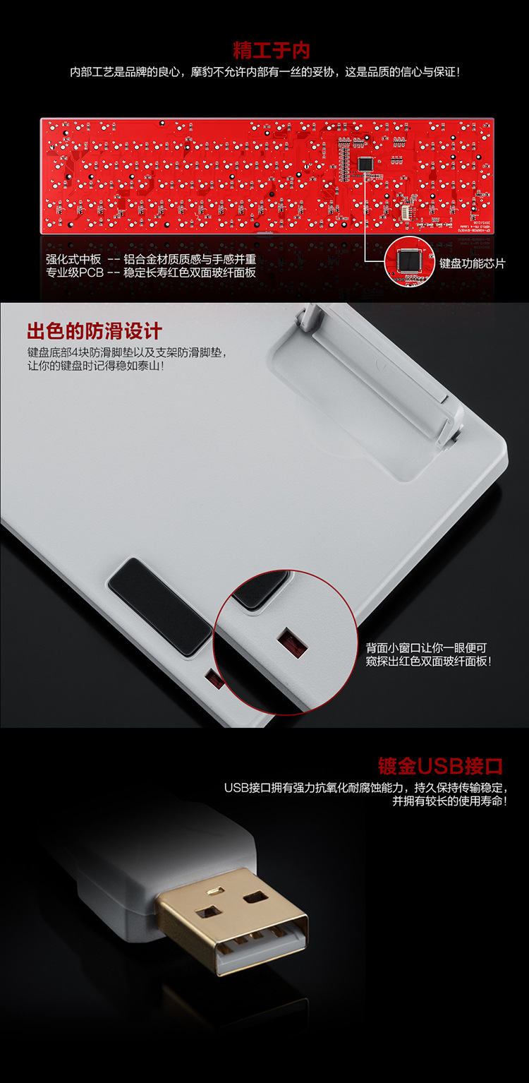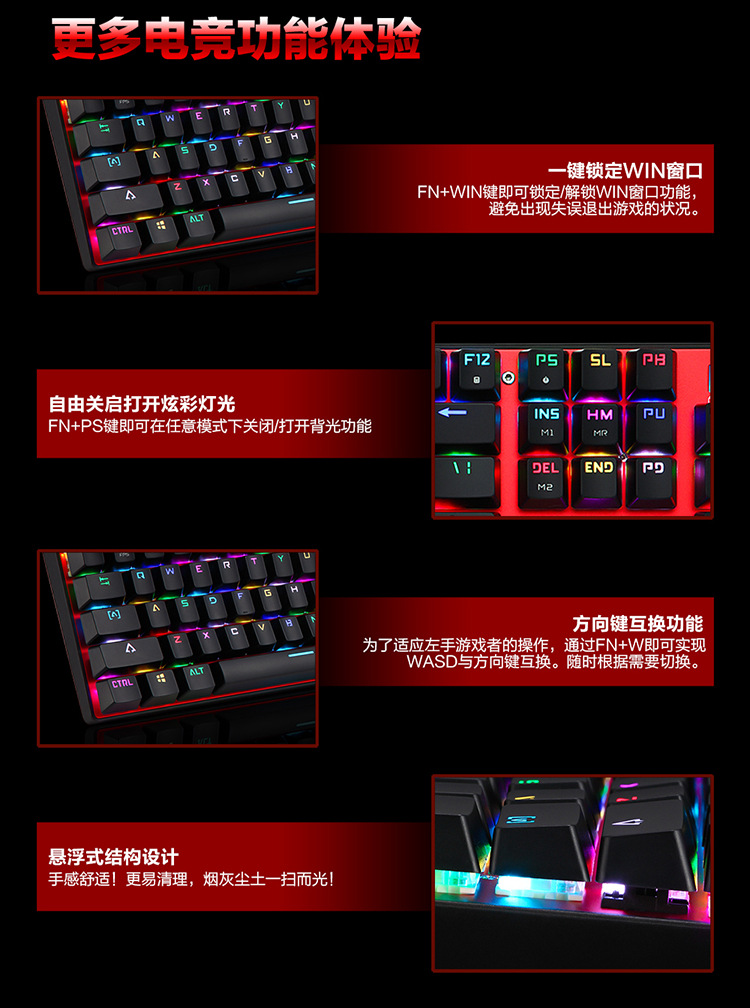 Unique suspended keys design, unique keystroke rhythm feeling.