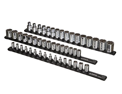 3-Piece Aluminum Socket Organizer | ARES 70087 |1/4-Inch, 3/8-Inch, 1/2-Inch Drive Socket Rails Hold 48 Sockets and Keep Your Tool Box Organized