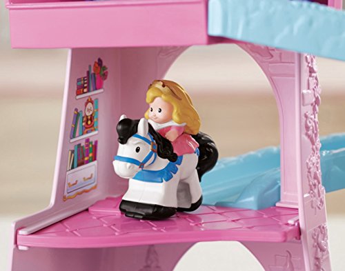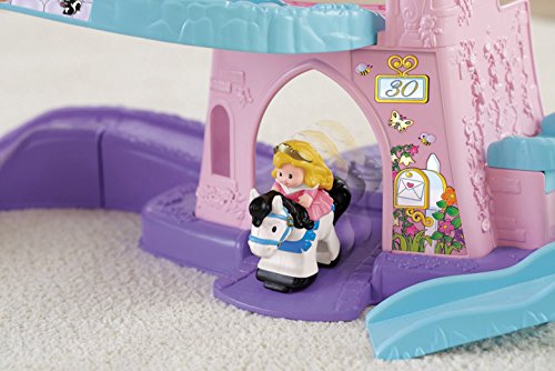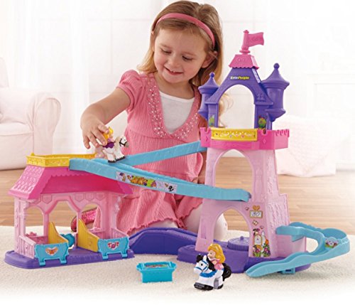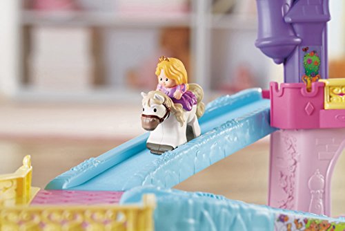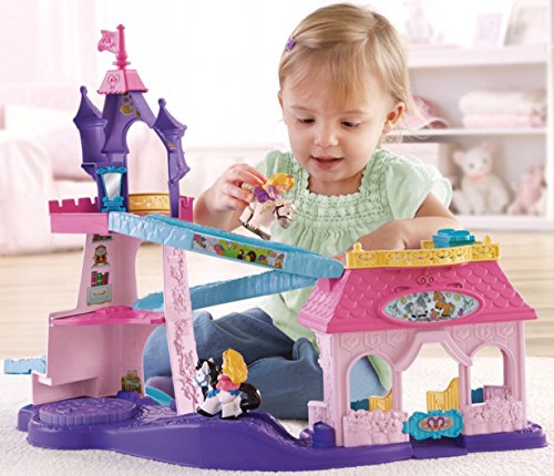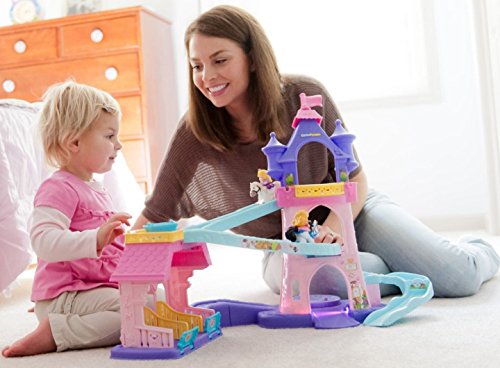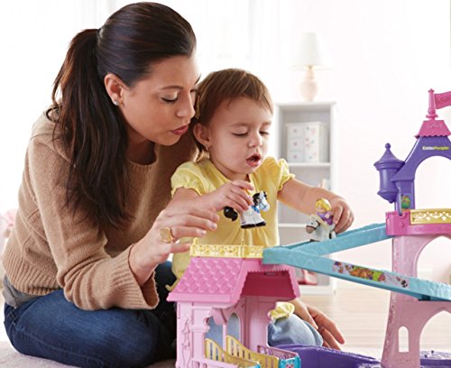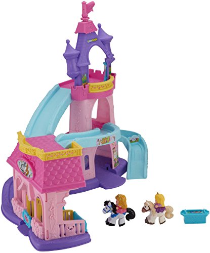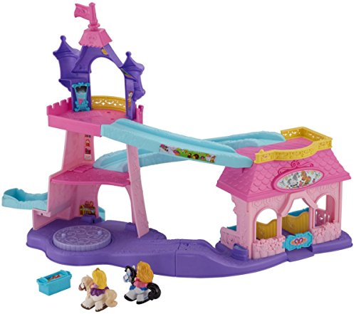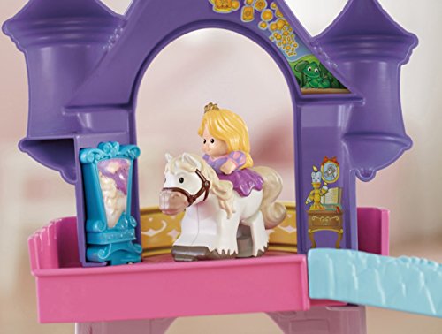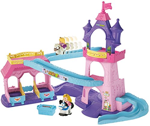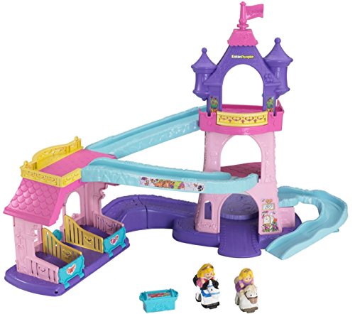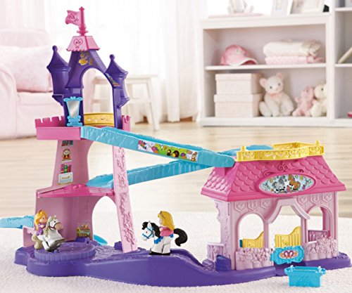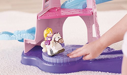 Your little one will bring the much-loved Disney Princesses, Rapunzel and Aurora, and their trusty horses to life with this beautiful play set. There’s so much to make happen: fun sounds, music, phrases and exciting “klip-klop” action! Place the horses on the colorful ramp, give them a little nudge and they “klip-klop” down the ramp all on their own! There are two royal areas –the 3-tiered tower and a horse stable – and each is loaded with special rooms and surprises to thrill little imaginations. Spin the thumbwheel on the dance floor to start music and make the horses “dance”!Feature