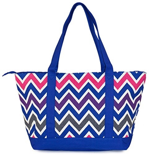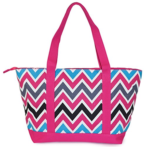 -. Feature : This oversized tote bag is built with sturdy, 100% cotton canvas. / Secure your contents with zipper closure on the top inside / Matched color Polka Dot P.R.Ints liner with 2 interior wall pockets for easy access to keys, phone, etc / Easy carry design, 11" reinforced shoulder drop ensures a comfortable fit / 22" wide, 13" height (24" with handle), 8" depth, inside height 12" from zipper closure