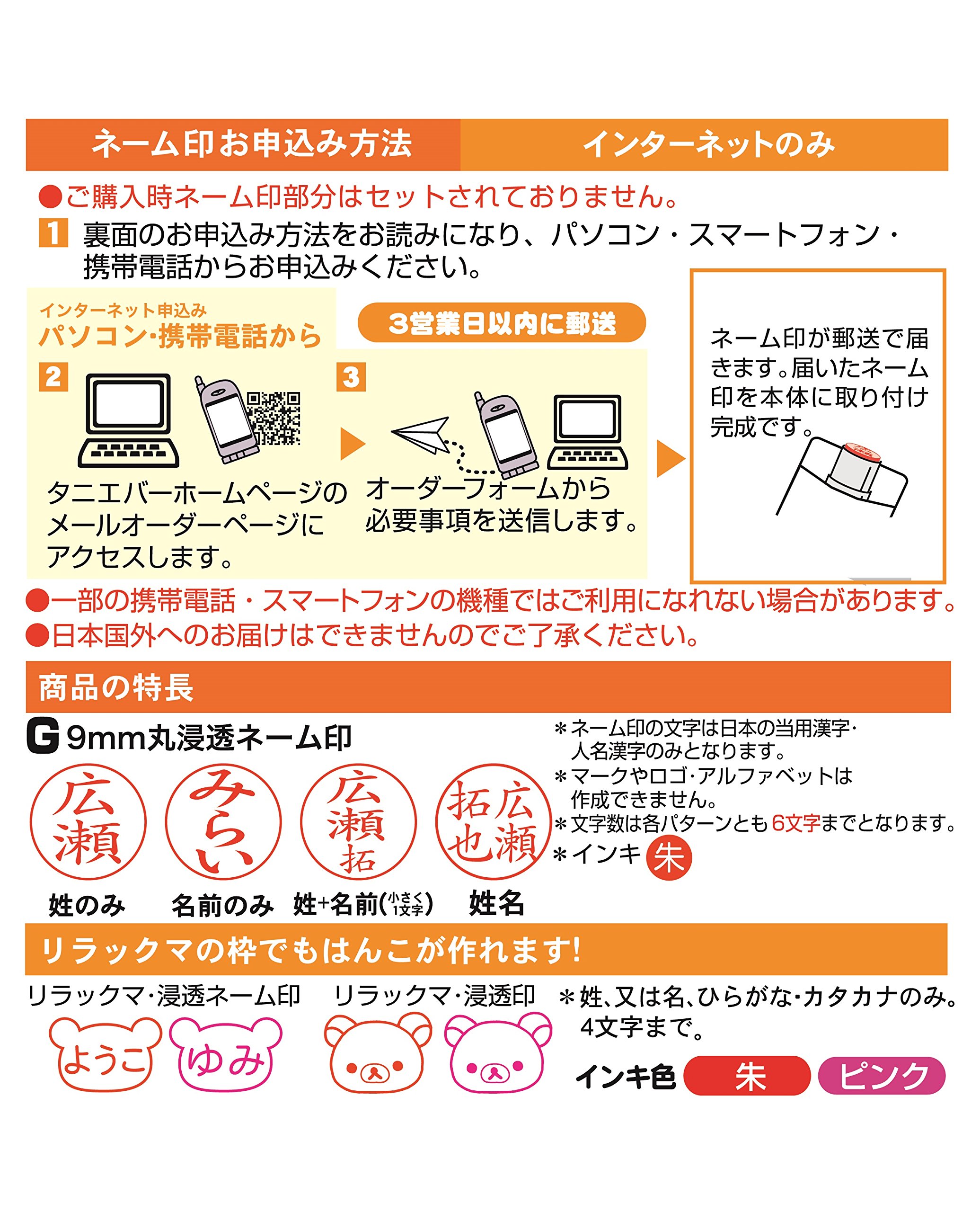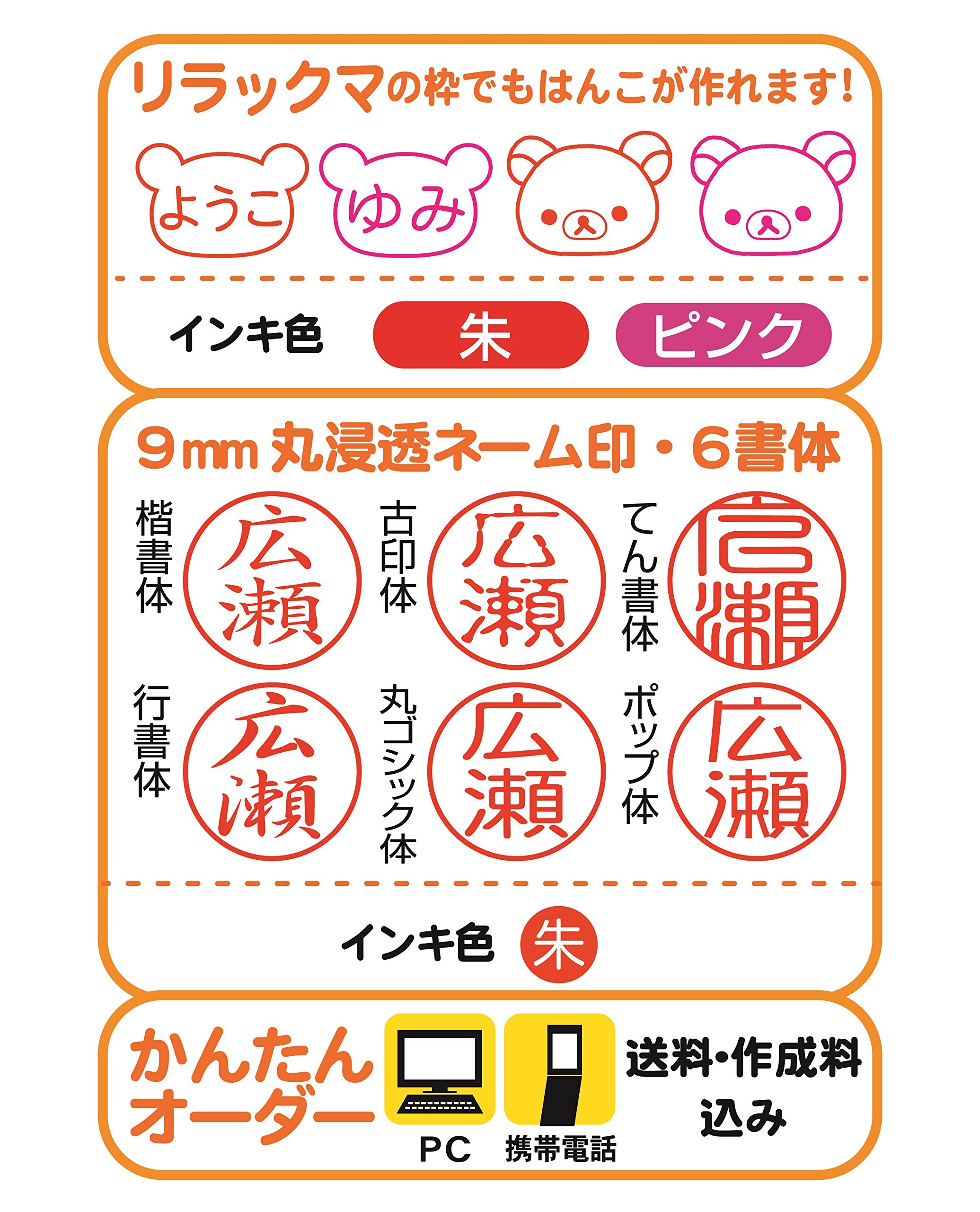 A popular rilakuma designed 9 mm penetration name mark + easy to use knock type pen with the function of a black ballpoint pen.