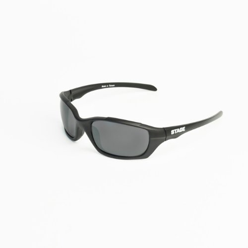 Studio : Stage Publisher : Stage Binding : Sports Product Description The wrap around fit of the Stage Critic sunglass helps prevent peripheral glare and adds wind protection. Non-slip material on the nose piece holds the sunglass in place during strenuous activity. These sunglasses are great for active sports or just hanging out. Lenses are UV400 rated and have an anti-scratch coating. Available in two styles -- White Frame with Blue Mirror Smoke Lens (Bright Light) and Black Frame with Mirror Smoke Lens (Bright Light). 0