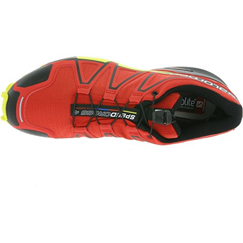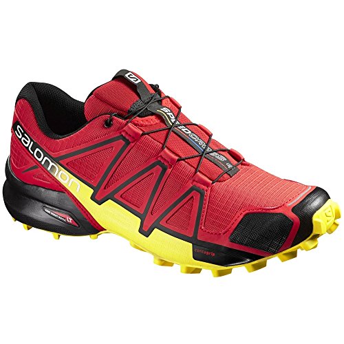 Studio : Salomon Publisher : Salomon Binding : Shoes Product Description The Salomon Speedcross 4 Trail Running Shoe Conquer any trail in the new Salomon Speedcross 4 Trail Running Shoe. The latest iteration in the revered Speedcross series, the Speedcross 4 features an updated outsole pattern for even greater traction and higher durability, to keep you moving forwards no matter what the trail throws at you. Complete with a water-resistant and reinforced upper, you can rest assured that your feet will be protected throughout your run. Durable Upper The Speedcross 4 features a water-resistant, breathable upper, which keeps your feet comfortable throughout your run. The upper is also lightweight and abrasion resistant, with highly-durable materials deployed around high-wear areas to minimise damage to your shoes from rocks and branches. The durable PVC Toe Box provides further durability and impact protection. The addition of an Anti-Debris Mesh and a Gusseted Tongue provide the wearer with further protection by preventing pebbles and other debris entering the shoe and causing discomfort. Externally, the Speedcross 4 features Salomon's Quicklace system, which provides one-pull tightening for a secure fit and easy on/off: simply pull the Kevlar string and the shoe will close evenly for a better fit, which delivers precision adjustment and a secure lock down. A Lace Pocket has also been included in the design to provide easy storage and prevent your laces getting in your way or getting damaged whilst on the trail. Sensifit technology works in tandem with the Quicklace system to cradle the foot from the midsole through to the laces to provide a stable, precise, and snug fit for enhanced support. Full-Length EVA Midsole The midsole has been designed and constructed with responsive cushioning in mind. Salomon have created the Speedcross 4's midsole to provide supportive comfort whilst retaining a lightweight. The midsole utilises a dual fusion of Salomon's proprietary LT Muscle and Injected EVA cushioning systems. LT Muscle provides lightweight 0