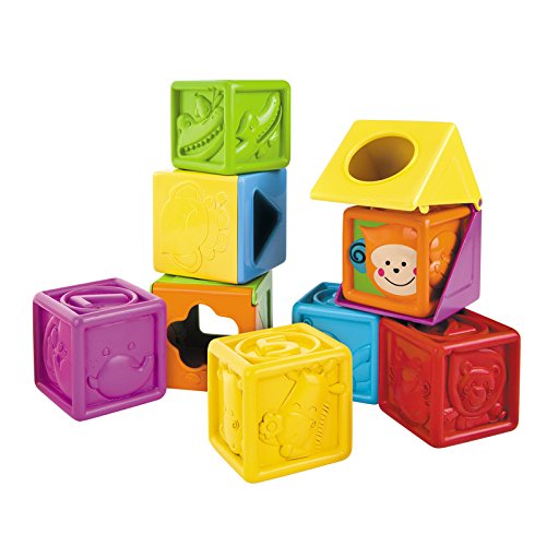 Little minds enter a world discovery with 9 soft blocks that rotate and open up for hours of stacking fun and surprises. The clever animal face figure designs also add extra fascination for babies.