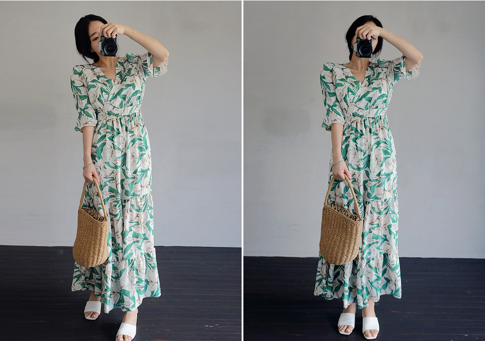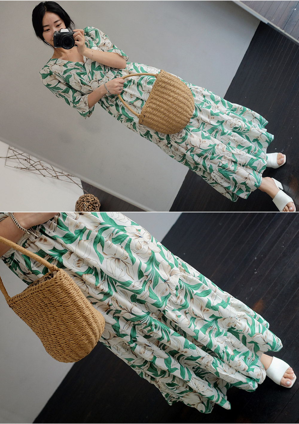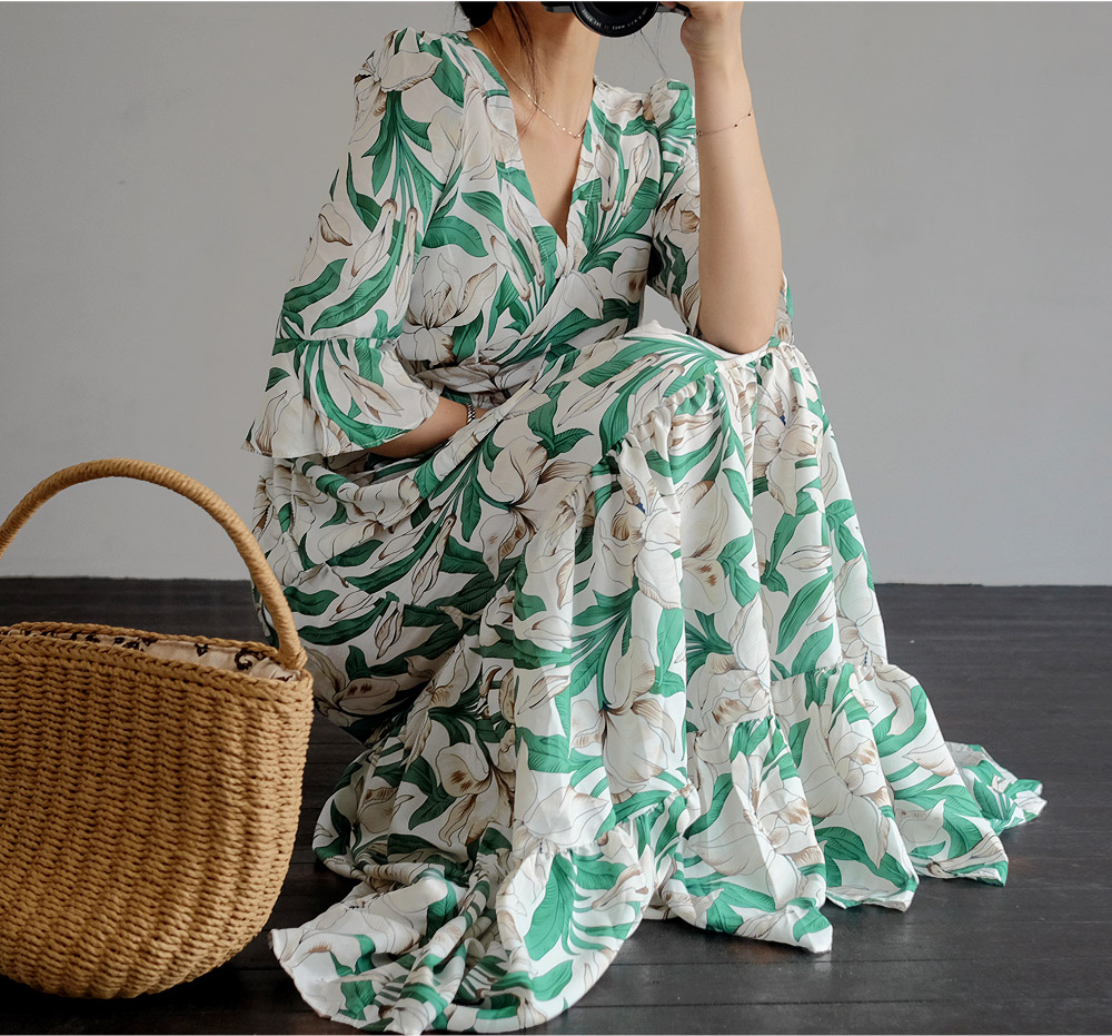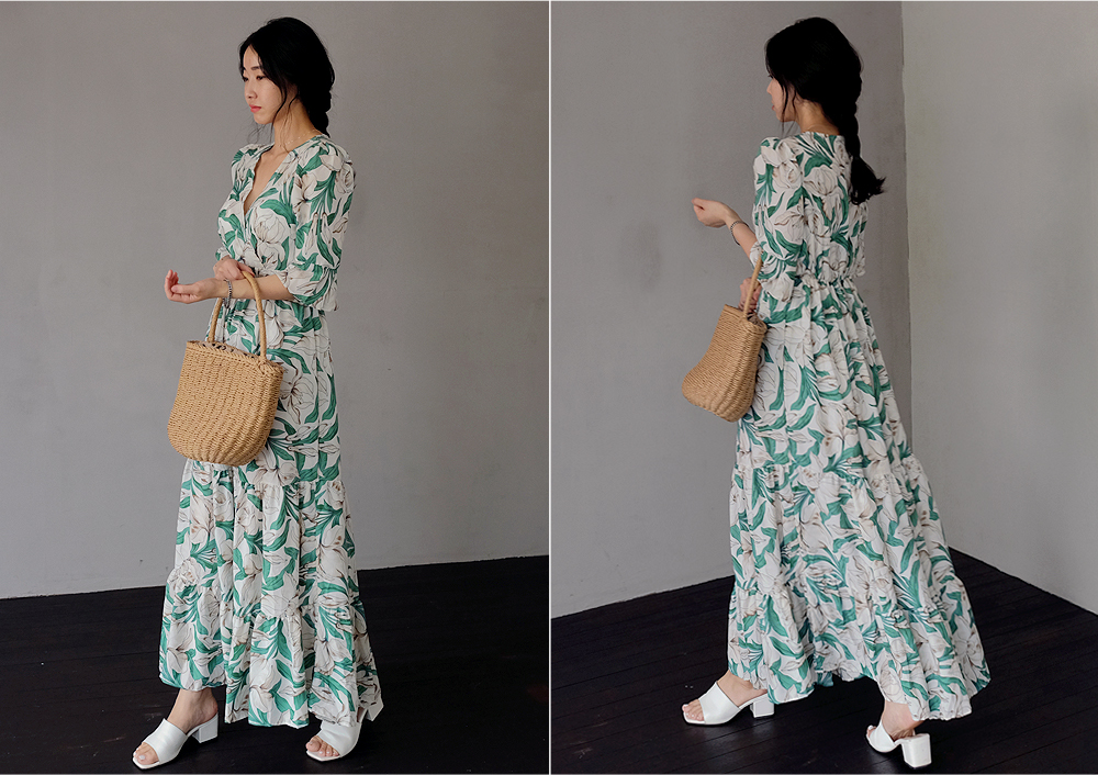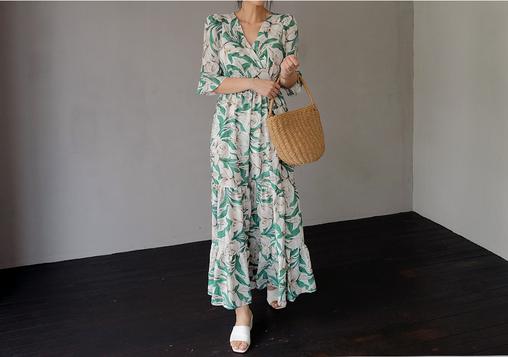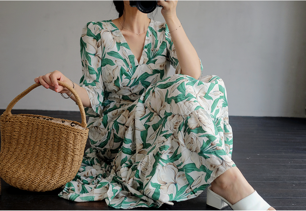 花柄がフェミニンな雰囲気を演出してくれるワンピースです。