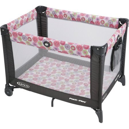 Studio : Graco Publisher : Graco Binding : Baby Product Product Description Make sure your little is comfortable no matter where you go with the Graco Pack 'n Play Playard. It's perfect for travel with automatic folding feet and wheels for a compact fold, plus a durable and sturdy frame that can stand up to lots of on-the-go use. The signature Graco push-button fold allows you to break it down quickly and without hassle, and it fits easily into a convenient carrying bag for no-fuss travel or storage. At home or away, playing or napping, baby will be kept comfy and cozy. Livia fashion: A colorful flower print, balanced by pink and dark grey solids, make this lively pattern perfect for your little princess. 0