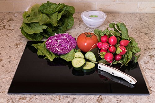 BEAUTIFUL AND MODERN: As a space saver, it protects counter and other surfaces from heat, condensation, and scratches. The black glass is great for that clean, minimalistic feel. They’re also perfect for customized etching to make a great wedding gift or birthday gift. Cooking and preparing food with these glass cutting boards couldn't be easier, or better looking