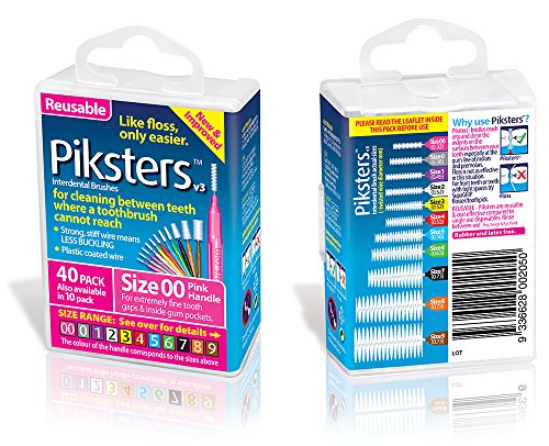 Piksters Interdental Brushes.Ultra fine size 00 (Bright Pink) in a convenient 40 pack. Small convenient plastic case holds 40 brushes. The case is resealable and perfect for travelling or your bag.