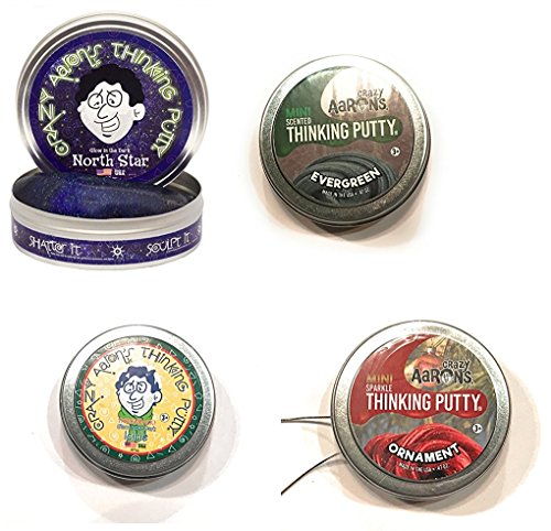 -. Title : Crazy Aaron's 4 Pk Thinking Putty Holiday Tins - North Star, Evergreen, Icicle, Ornament