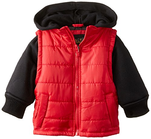 Solid color vest detail with contrast color fleece hood and sleeves