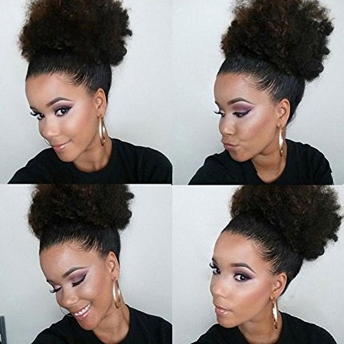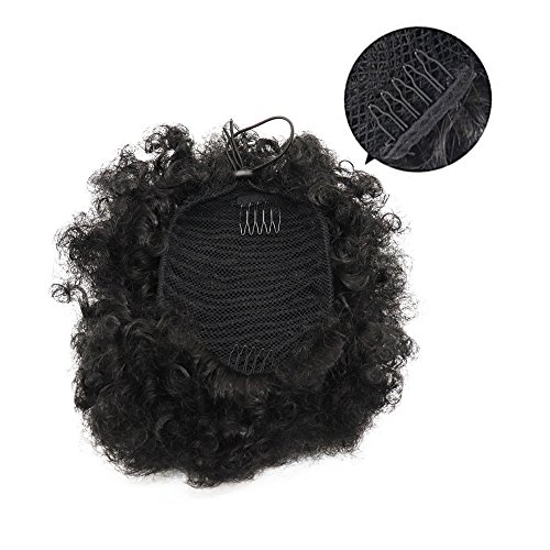 VGTE Beauty Synthetic Curly Hair Ponytail African American Short Afro Kinky Curly Wrap Synthetic Drawstring Puff Ponytail Hair Extensions Wig with Clips(#1)