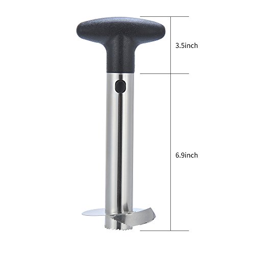 REASONABLE SIZE -- The pineapple corer’s height without handle is measured by 6.89 inch, its base diameter is 3.3 inch. Its sharp cutter edge, and its perfect size design, made Minimal waste, more easily peeled.