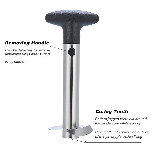 QUICK USE EASY CLEAN-- Simply push down and twist to create perfect pineapple slicer every time. You can save time and energy to enjoy tasty fruit. The cutting disk can be separated from handle for easy use and cleaning.
