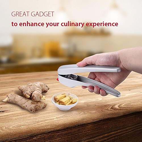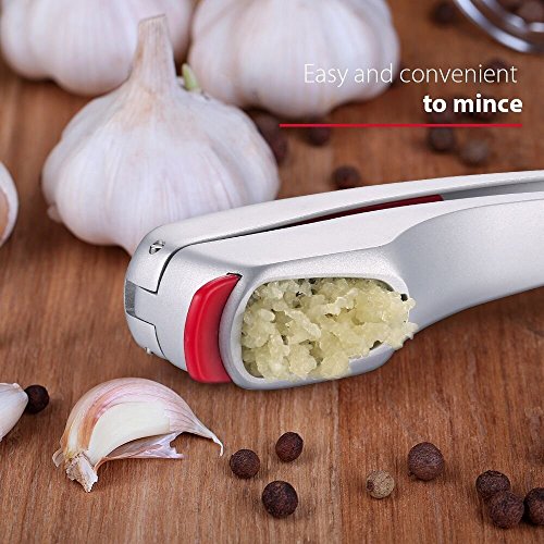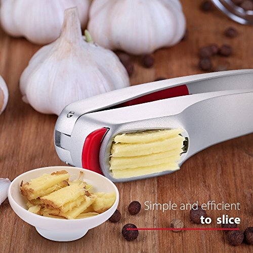 PREMIUM QUALITY. iNeibo garlic press/slicer is 100% aluminum alloy that won't rust. It is light and handy. It does not contaminate food.