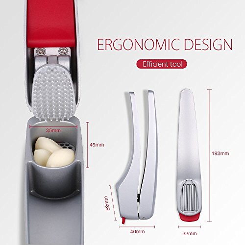 iNeibo Professional Stainless Steel Garlic Press, Garlic Press and Peeler Set-Garlic Mincer/Slicer, Easy to Press