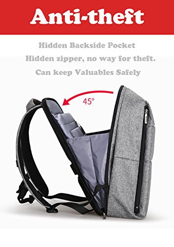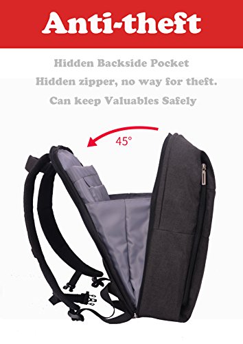 -. Feature : ❤Dimensions:18.9x 12.6 x 6.7 inch with dedicated laptop compartment holds Laptops up to 16 Inch. / ❤External USB Interface: You can easily and conveniently charge your phone, tablet and other devices without opening up the backpack. / ❤Anti-theft Design: Hidden zipper of the main pocket is close to the backside can protect your belongs from thief. / ❤Multi-compartment & Classified: 3 MAIN pockets & 5 INNER small pockets & 2 hidden side pockets & 1 hidden backside pocket, provides a separated space for your Laptop, iPhone, iPad, pen, keys, wallet, books, clothes, bottle and more. Easy find what you want. / ❤Other function design:1) Practical pockets on the strap, convenient for card, changes etc.2)Lage strap design, used with draw bar box, make travel easier.3) hidden backside pocket, can keep valuables safely.4) hidden side pockets, can keep umbrella and bottle, also keep appearance beautiful. 5) Sunglasses hook on strap, convenient to place your sunglasses.