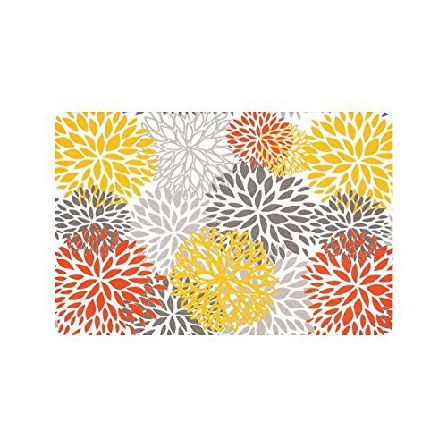 -. Title : 23.6"(L) x 15.7"(W),3/16" Thickness, Gray Yellow Red Dahlia Flower Floral Indoor/outdoor Floor Mat Doormat