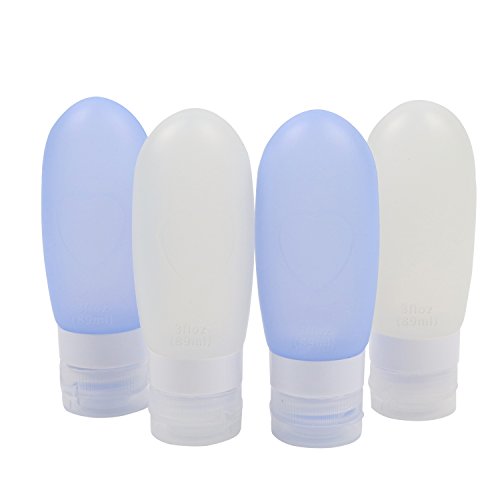 Travel Bottles, Leak Proof Food-Grade Silicone Travel Cosmetic Bottle, Portable Reusable ShampooShower Gel Lotion Travel Containers (4 Pack) (1 color# 4x3oz)