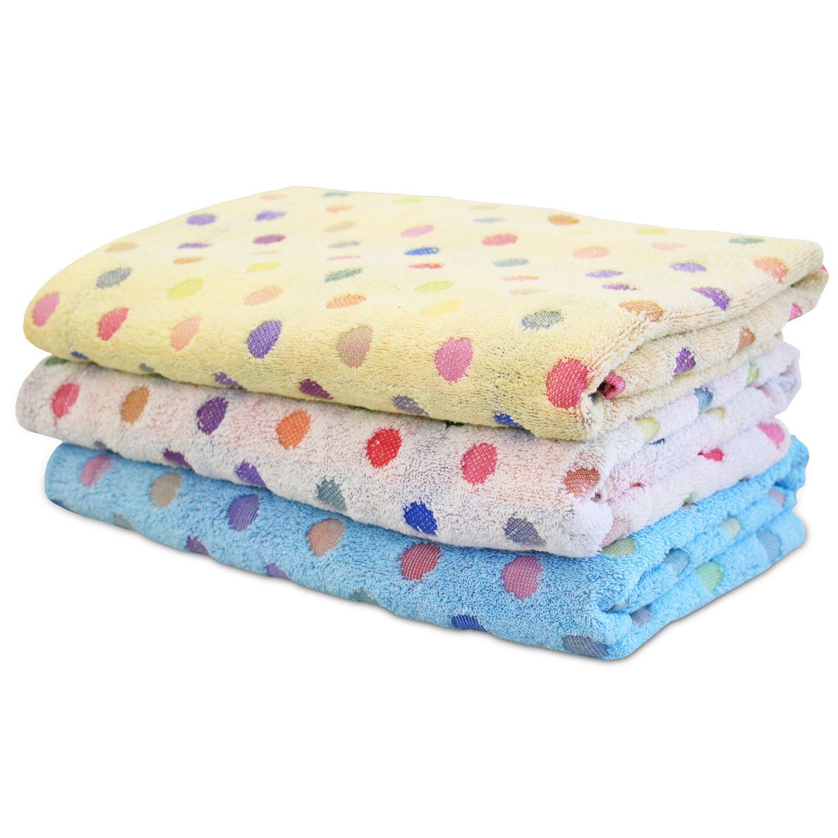 Non-twist yarns dot large-sized bath towels thick type 3-color set (70 × 140cm) Yellow White Blue