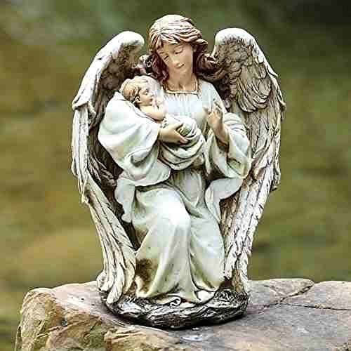 Josephs Studio Garden Statue, 63650, Guardian Angel Kneeling and Holding a Baby, 17 inches tall