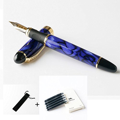 -. Feature : Classic Smooth Writing Pen / 18k gold-plated stainless steel nib / Detachable Rotate Ink absorber / Promotional gifts:5pcs black fountain pen ink cartridge (International standard) / Package : Black Velvet Bag & Air Bladder Bag (prevent damage)