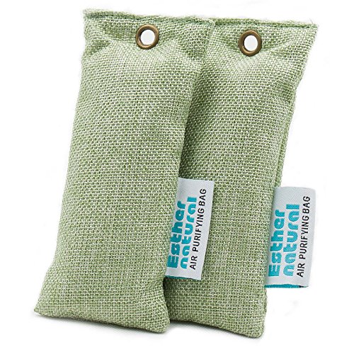 Esther Natural Mini Air Purifying Bags; Deodorizer and Odor Eliminator for Shoes, Gym Bag , Luggage and etc.; 100% Bamboo Charcoal, Chemical Free and Non-toxic; Lasts up to 2 years! (Green)