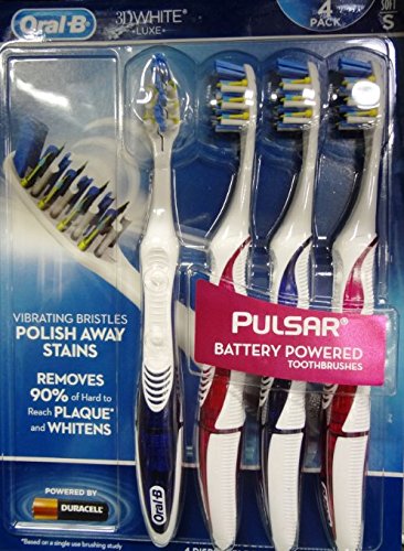 -. Title : Oral-B 3D White Luxe 4 Pack Pulsar Battery Powered Toothbrushes