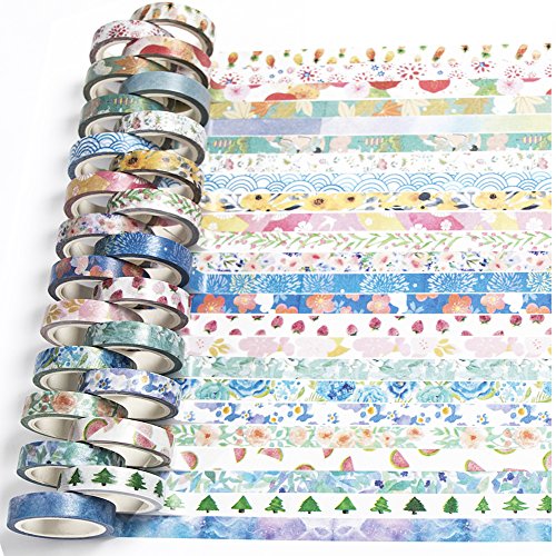 - 24 DIFFERENT STYLES - The colorful patterns include fresh fruit, lovely plants and a wide variety of flowers. You can use washi tape to decorate your notebooks, rooms, walls and much more.