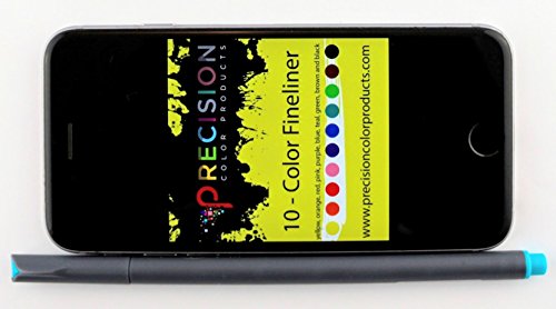 -. Title : Fineliner Pens by Precision Color Products | For your Desk, Planner, Art, Sketching, Notebook, Journal and Kid School | 10 Marker Set .38 Tip Yellow Orange Red Pink Purple Blue Teal Green Brown Black