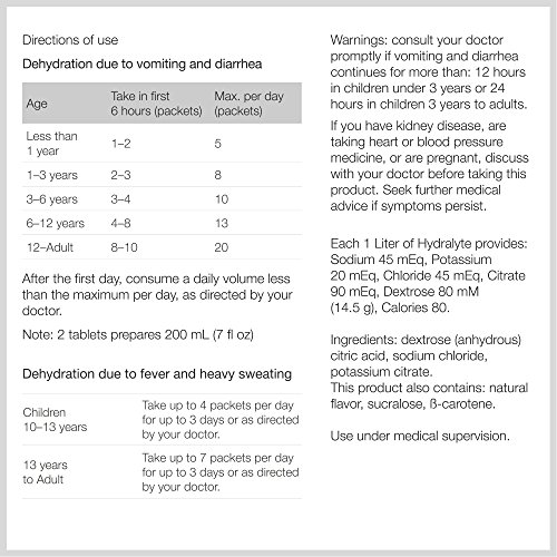 PERFECT HYDRATION SOLUTION FOR ACTIVE PEOPLE:Hydralyte may also be taken to help manage dehydration due to the loss of fluids through heavy sweating. This can be caused by fever, endurance exercise, prolonged heat exposure or prolonged physical work.