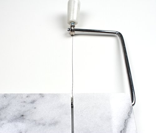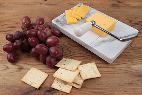 RSVP strives to offer quality kitchen products and cooking tools at competitive prices. Our White Marble Cheese Slicer is a perfect example. An elegant way to slice and serve a variety of cheeses. Ideally sized for most cheeses, it measures 5-inches by 8-inches. Use it at your next wine and cheese party or just pamper yourself and enjoy it for everyday use. The stainless steel wire cutter makes perfect slices every time. Our clever design allows the wire to pass completely through the cheese into the groove below. Comes with 2 replacement wires. Replacement wires are also available separately. When all the right people, and ingredients, kitchen tools, and food come together, we call this The Art of Gathering.Feature