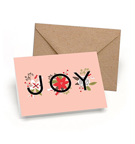 Set of 12 Christmas Cards - Simple Joy - NEW FOR 2016! - 12 Soft Pink Christmas Cards + Kraft Envelopes - By Palmer Street Press