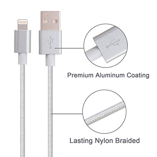 Amoner 3 Pack 6FT iPhone Nylon braided Lightning Cable USB Charging Cable Cord for iphone 6s, 6s plus, 6plus, 6,5s 5c 5,iPad Mini, Air,iPad5,iPod. Compatible with iOS9. Silver