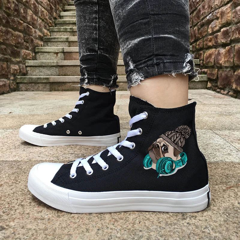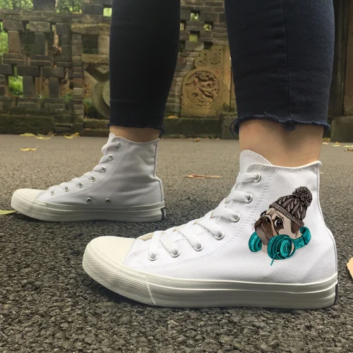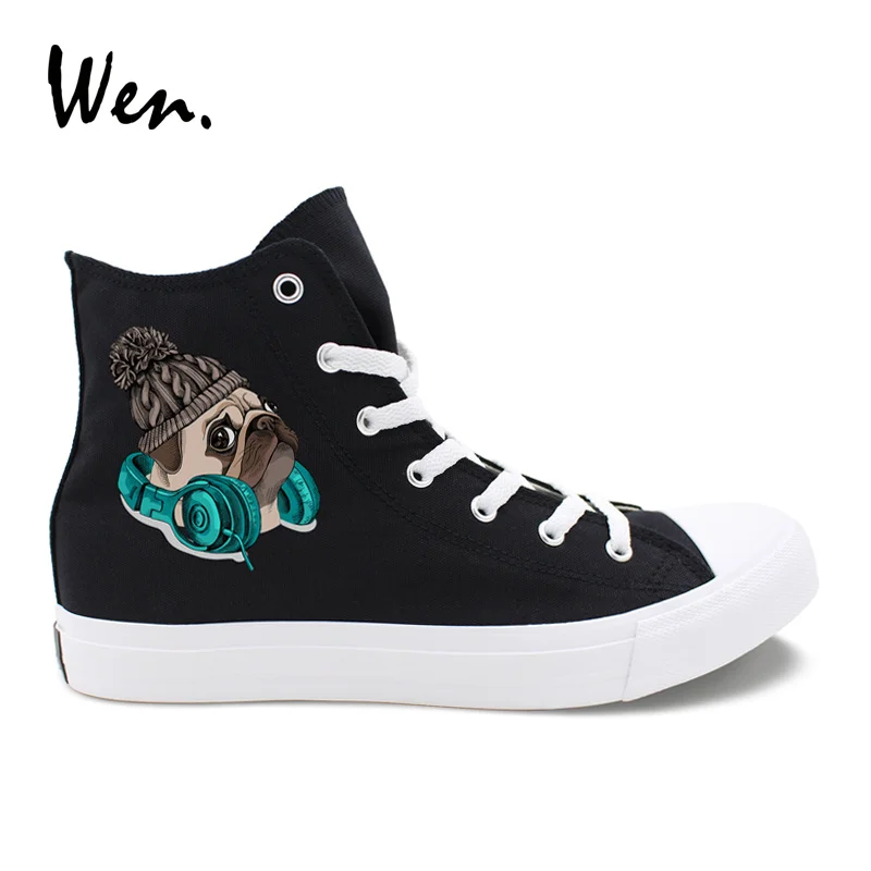 Pattern:Cute Pug Dog with Knitted Hat Earphone printed