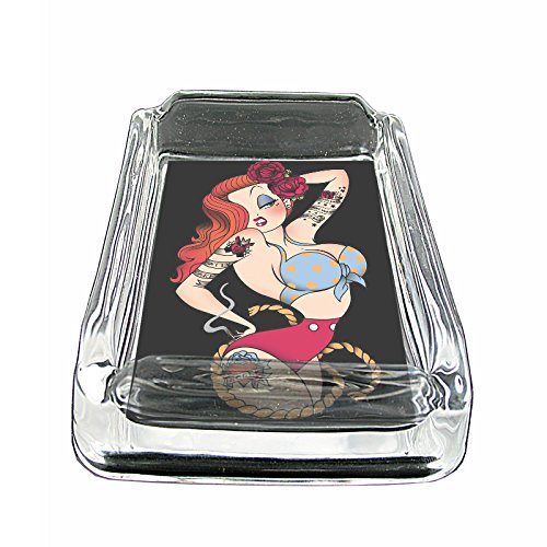 -. Title : Sexy Savage Pirate Pin Up Girl S10 Glass Square Ashtray 4"x3" Sturdy Cigarette Smoking Retro