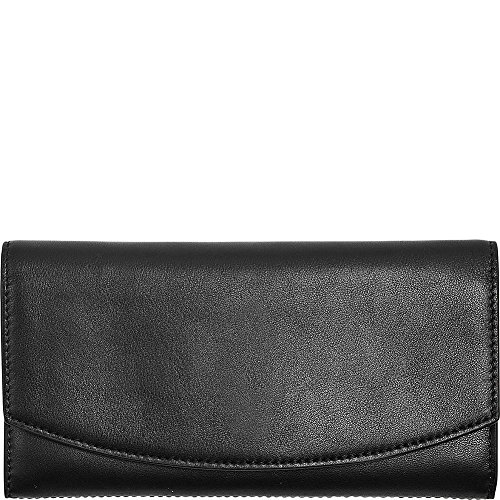 The snap-button flap of the continental leather flap wallet opens to reveal 12 card slots, a zip pocket and a bill slot, while the exterior features a slip pocket large enough for a smartphone.