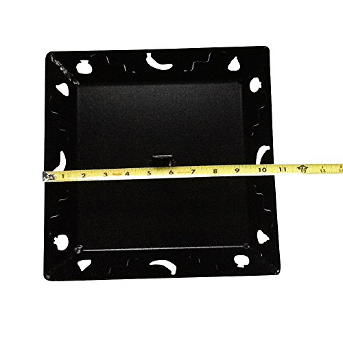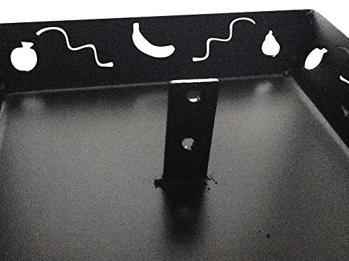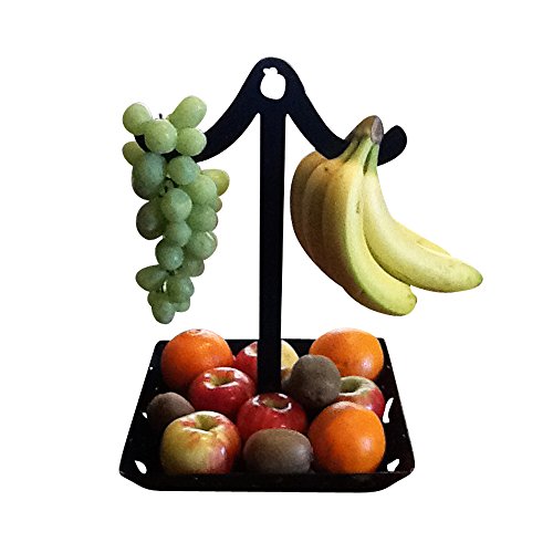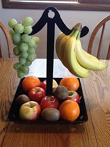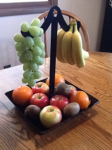 Fruit basket made of steel powder coated black with plasma cut fruit design. Has padded feet so it does not scratch counter or table surface.The fruit hanger is detachable. Clean with warm cloth do not put in dish washer . The fruit basket is 10.5" x 10.5" wide x 16" tall. Made in USA.Feature