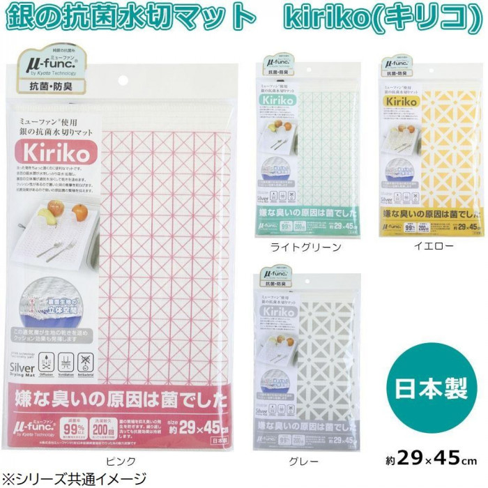 | 食器乾燥機に入らないお鍋や、ちょっとした洗い物のときに大活躍!表のマイクロファイバー生地で水分をサッと吸水します。メッシュ状なので通気性もよく、乾燥が早いので衛生的です。また裏面生地にはクッション性があるので食器を置いたときの衝撃も和らげてくれます。純銀の抗菌糸「ミューファン(R)」を使用しており、純銀から放出される銀イオンが菌の繁殖を抑え、臭いの発生を防ぎ衛生的にお使い頂けます。 |
