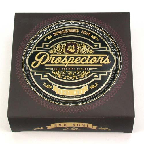 Prospectors Iron Ore is a water based pomade that gives firm hold and great control for any style and a natural shine. Iron Ore is infused with hemp oil which conditions and moisturizes hair and scalp. The cent is fresh with earthy tones. Prospectors was founded with the common man in mind. 4.5 oz tin. Made in the U.S.A.Feature