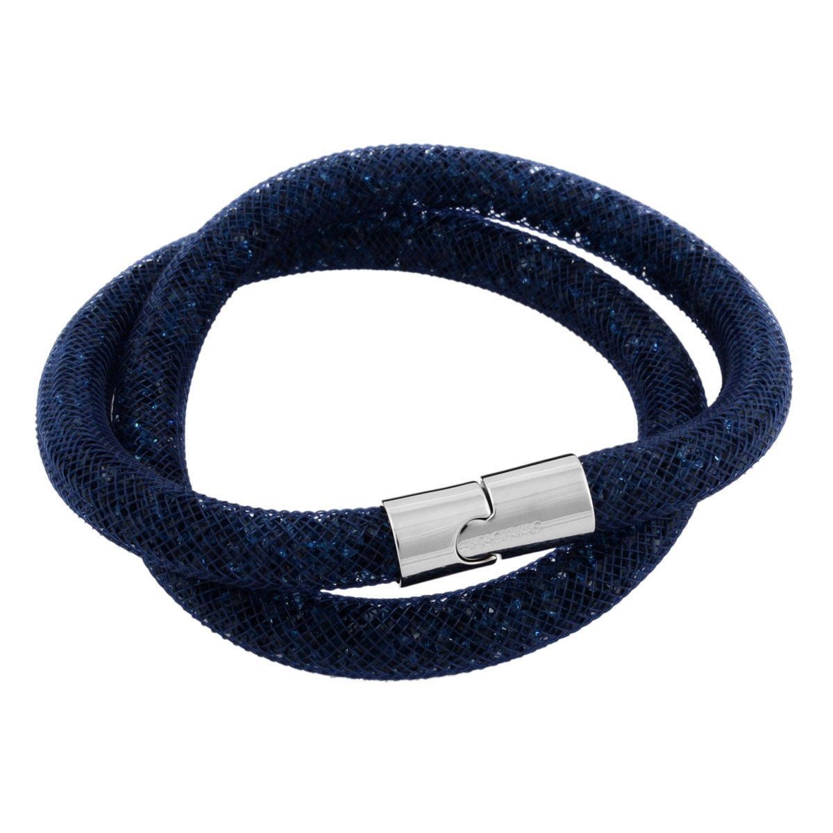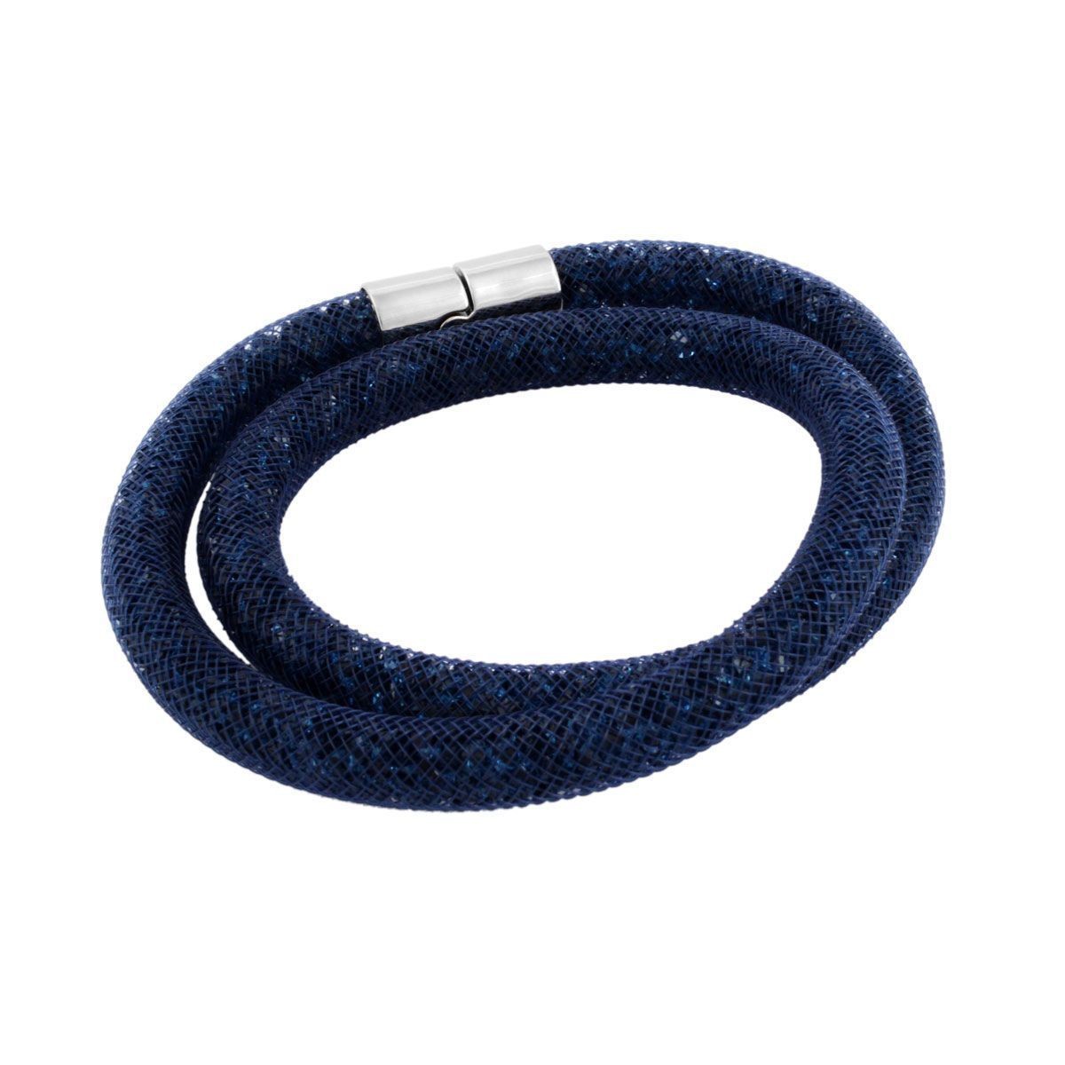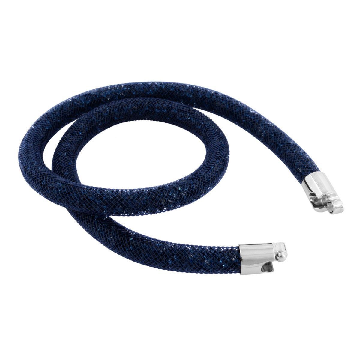 ブルーの筒状のナイロン製網地の中にブルークリスタルをふんだんにあしらった立体的でラグジュアリー感あふれるラップブレスレット。巻かずにネックレス、チョーカーとしてもお使い頂けます。マグネット式の留め具で装着もしやすく、シンプルコーデのアクセントに、どんなスタイルにも合わせやすいオシャレアイテムです。
