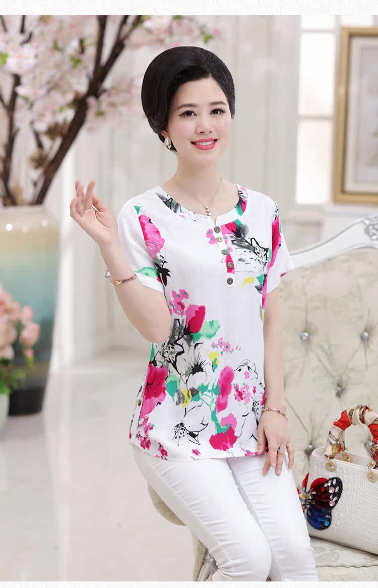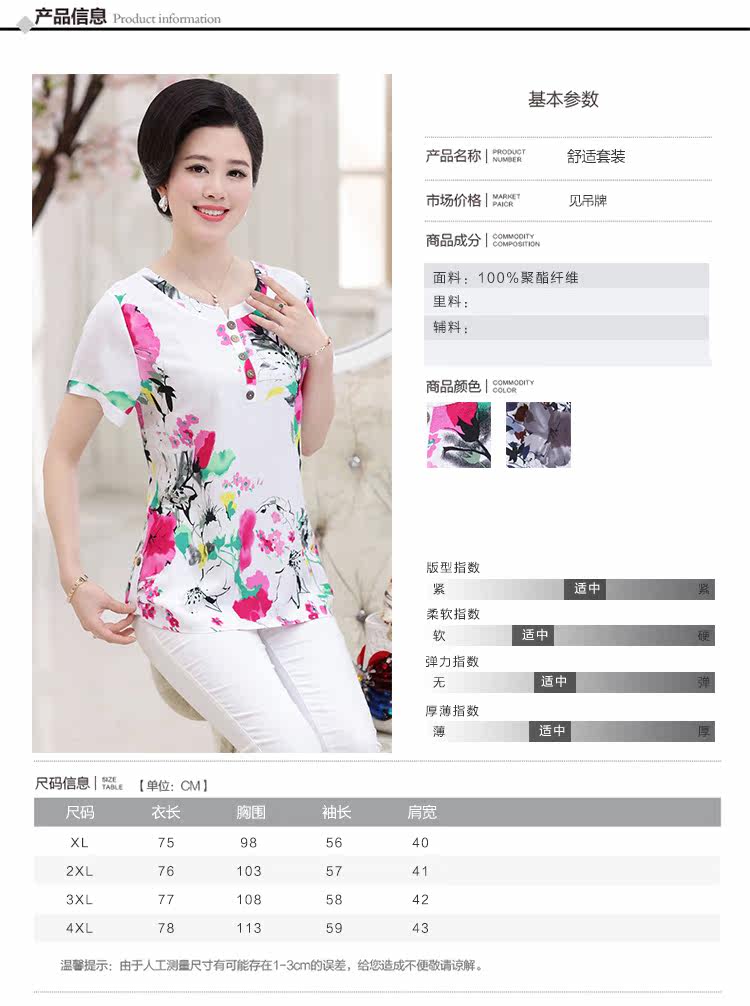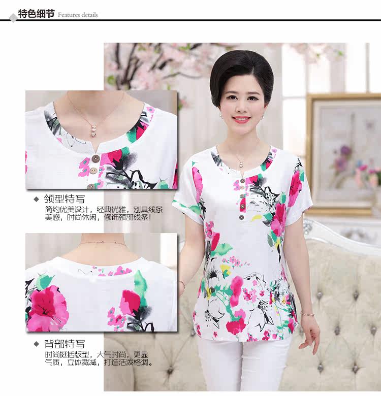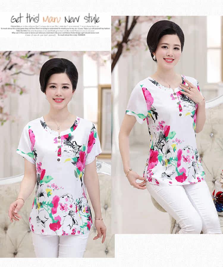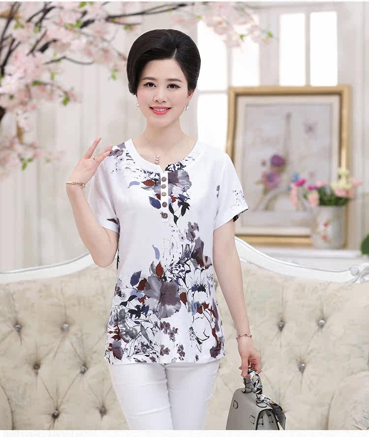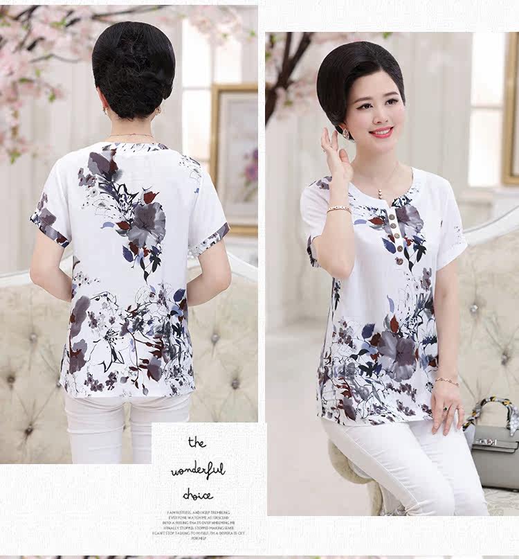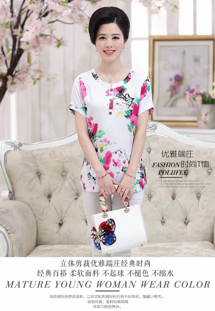 中年人女装夏季上衣40-50岁妈妈装夏装T恤中老年女装夏装短袖T恤