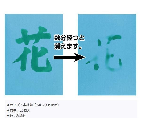 書いてからしばらく経つと乾いて、書いた箇所が消えます。墨やインクを使わないので、周りを汚したりする心配がなく、手軽に書道練習ができます。使用状況により500回程度使用可能です。 |