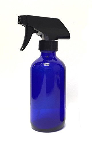 16 Oz Cobalt Blue Glass Bottle with high power black trigger sprayer - Perfect for mixing your own homemade cleansers, floor cleaners, essential oils, cooking oil, pet sprays, cleaning products or fragrance mixtures! Fits well into the hand, and high quality Calmar black trigger sprayer has settings for stream, spray, and off. Reusable and eco-friendly glass spray bottle can be used over and over again!