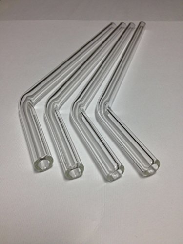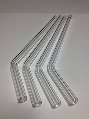 TSS Clear Glass Pyrex Drinking Straw BENT 9 Inch Set of 4, 9.5mm with Brush