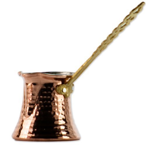 Ibrik - so nennt man die typisch orientalische Mokkakanne, und sie ist ein kleiner hoher, schmaler Behälter an einem langen Stiel. Diese Kanne ist perfekt geeignet um aromatischen Mokka zuzubereiten und die spezielle Form sorgt dabei für den cremigen Schaum, die Krönung eines jeden Mokkas. Die Mokkakanne ist meist aus Messing, Kupfer oder Keramik. Das vollmundig schwarze Gebräu wird direkt in der Mokkakanne gekocht - oder nein, "zelebriert".