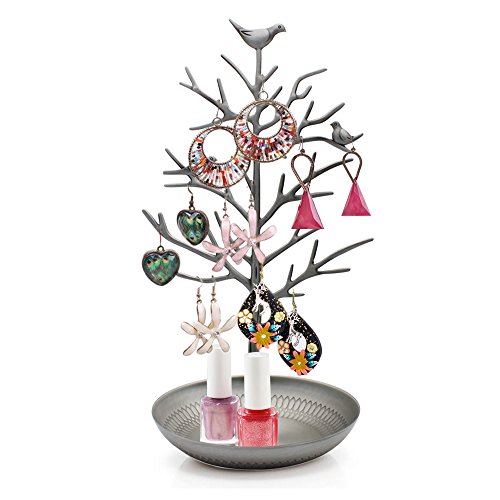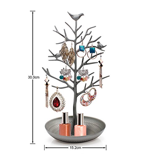 HQdeal Antique Silver Birds Tree Jewelry Stand Display Earring Necklace Holder Organizer Rack Tower (Antique silver)