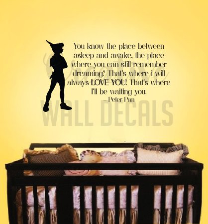 -. Binding : Kitchen -. Brand : CreativeWallDecals -. EAN : 0740016392361 -. Feature : ATTENTION!!! This is a product by CREATIVEWALLDECALS® Company . DON'T WRITE A FEEDBACK IF YOU BOUGHT THIS PRODUCT FROM CHINA. CreativeWallDecals® is a registered trademark and the only authorized seller of CreativeWallDecals® branded products . OTHER SELLERS ARE SELLING FORGERY. / Please check to see that it is "Sold by CreativeWallDecals" before you click Add to Cart . We can't guarantee quality of decals from other sellers . We use high quality 3M, Oracal or FDC vinyl . We don't use cheap clear plastic . CreativeWallDecals® - MADE IN USA only. / MADE IN USA . FAST SHIPPING FROM USA via USPS mail. CreativeWallDecals® produce decals in USA and ship from USA. / Actual size usually from 22x22" (for square and circle designs) to 22x35" . Please message us if you would like a custom color from our color's chart after purchasing, otherwise we ship it in color shown on picture. / Easy to Apply & Removable!!! You will get the instruction! We can make the design LARGER up to 80" . Please message us to know how to buy it. -. IsAutographed : 0 -. Label : CreativeWallDecals -. Manufacturer : CreativeWallDecals -. ProductGroup : Home -. ProductTypeName : HOME -. Publisher : CreativeWallDecals -. Size : Size usually 22" X 35" -. Studio : CreativeWallDecals -. Title : Vinyl Wall Decal Sticker Peter Pan Quote Kids Nursery Baby Bedroom Story r1906 -. UPC : 740016392361